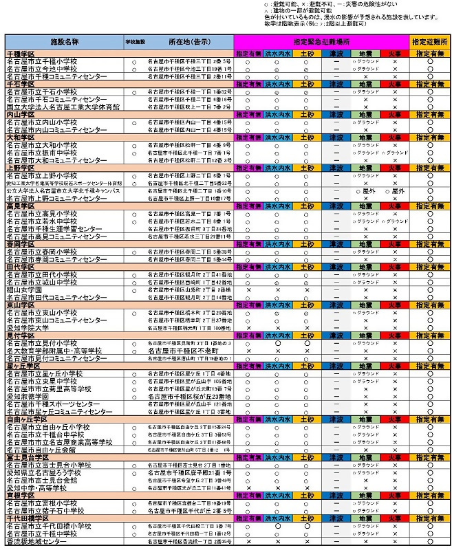 千種区の指定緊急避難場所・指定避難所についてご質問等ある場合は、総務課庶務係(電話番号:052-753-1811)へお尋ねください。
