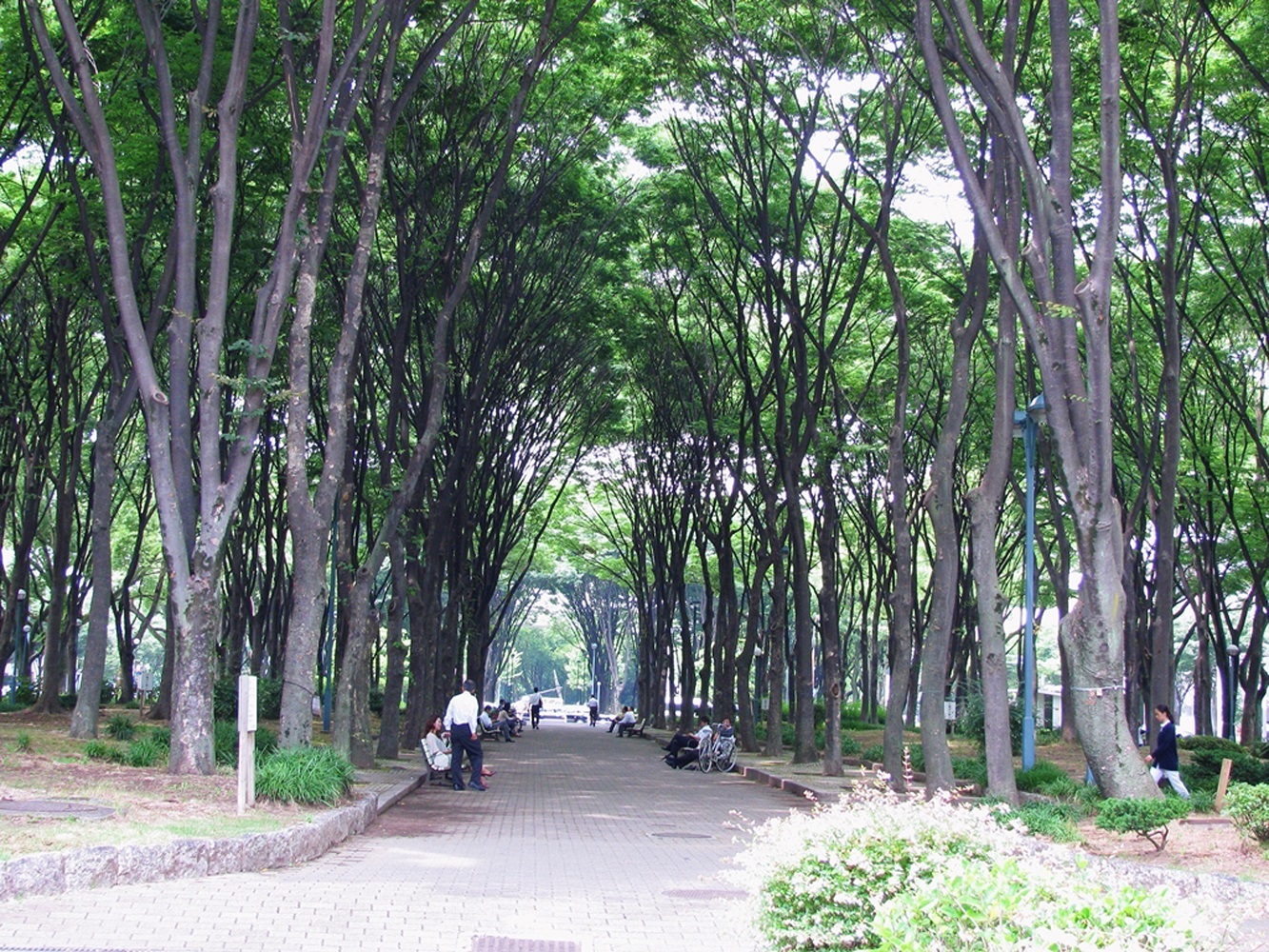 テレビ塔から名古屋城へ向かって行くまっすぐな木陰の道、涼しく森林浴もでき素敵なところです。お昼にはお弁当などもベンチで食べています。読書をたのしんでいる人もいます。癒しの空間です。〔福永ひろ子さん〕