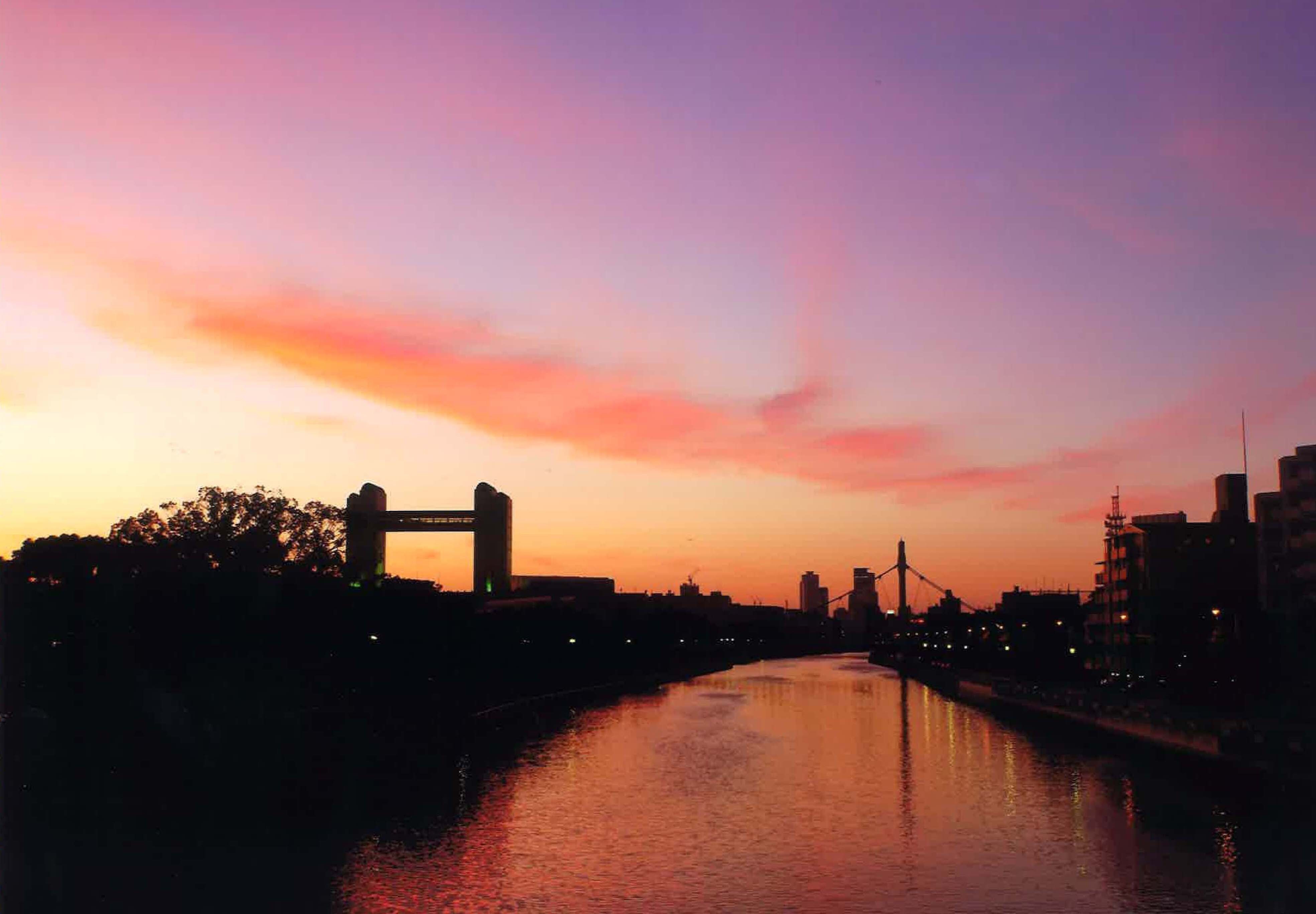 「熱田堀川の御陵橋から見た夕景」の写真データ