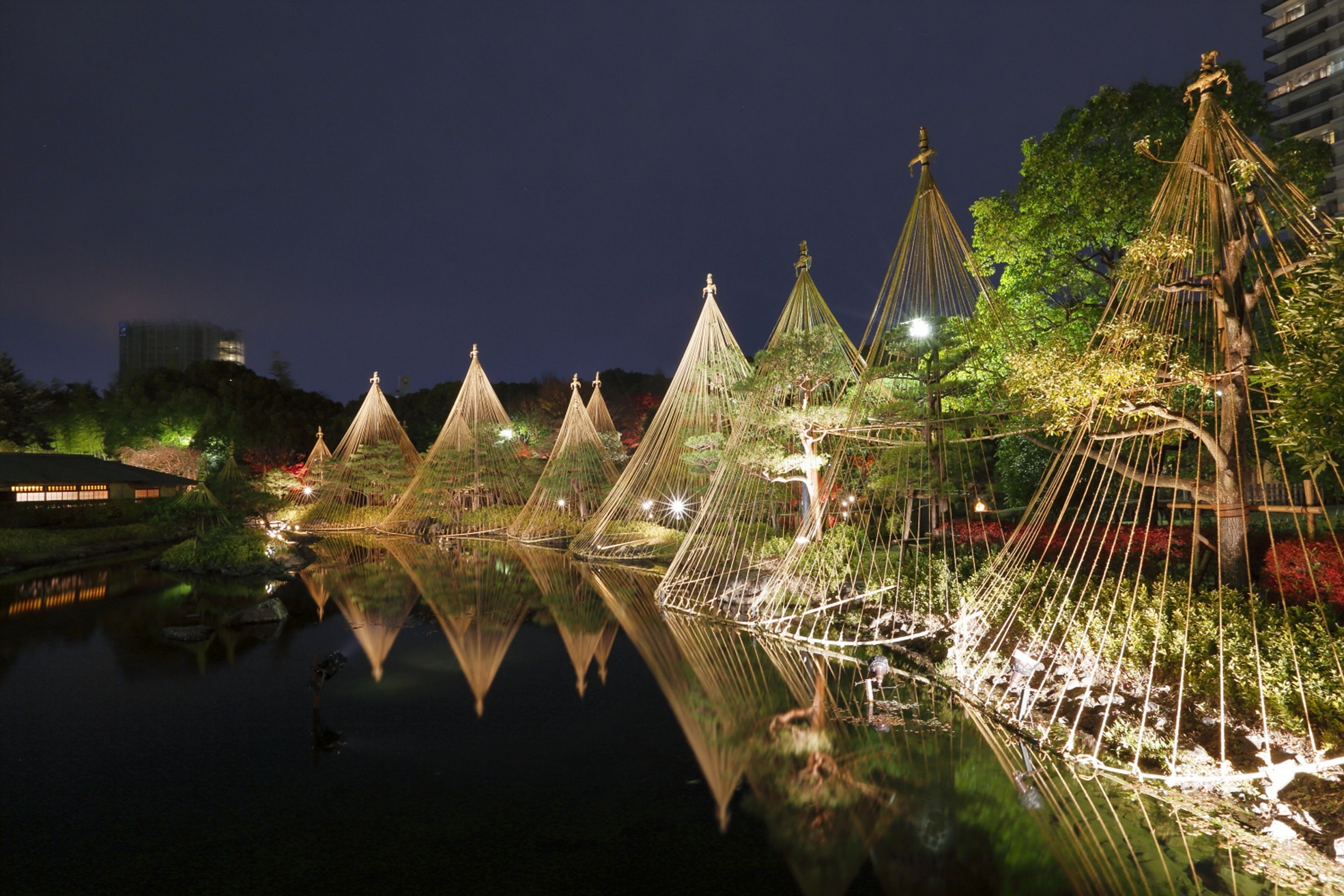 白鳥庭園は、池泉回遊式庭園で中部地方の地形をモチーフに、築山を御嶽山、そこからの流れを木曽川、流れの水が注ぎ込む池を伊勢湾に見立て、源流から大海までの「水の物語」をテーマにした東海地方最大級の規模を誇る日本庭園である。毎年、秋から冬にかけて、紅葉ライトアップイベントが開催されている。(第3回(平成28年度)名古屋まちなみデザインセレクション まちなみデザイン20選)