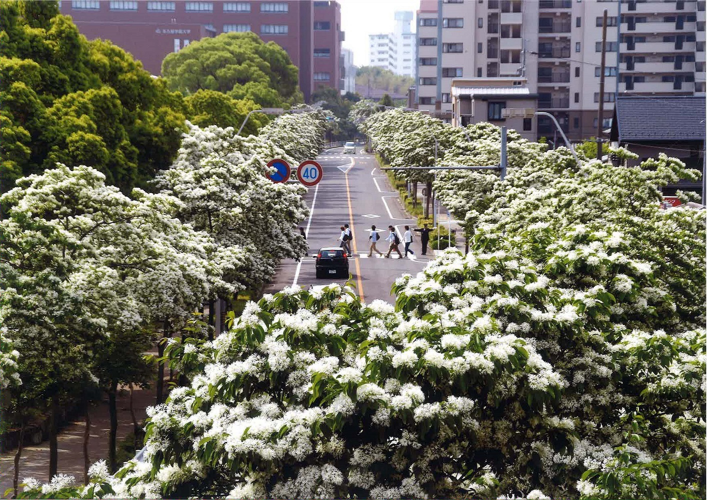 5月の新緑のこの時期、毎年真っ白な雪が積もったような並木道に変身しているので楽しみです。〔安藤健吉さん〕