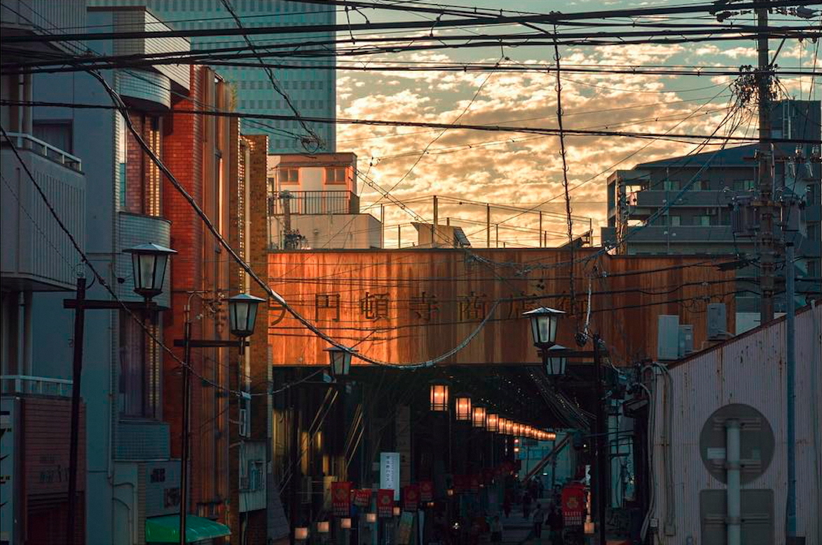夕陽に照らされる円頓寺商店街の看板がとても綺麗でした。日が暮れてからもあかりが灯り続ける商店街。名古屋の好きな街並みのひとつです。〔小川あやこさん〕