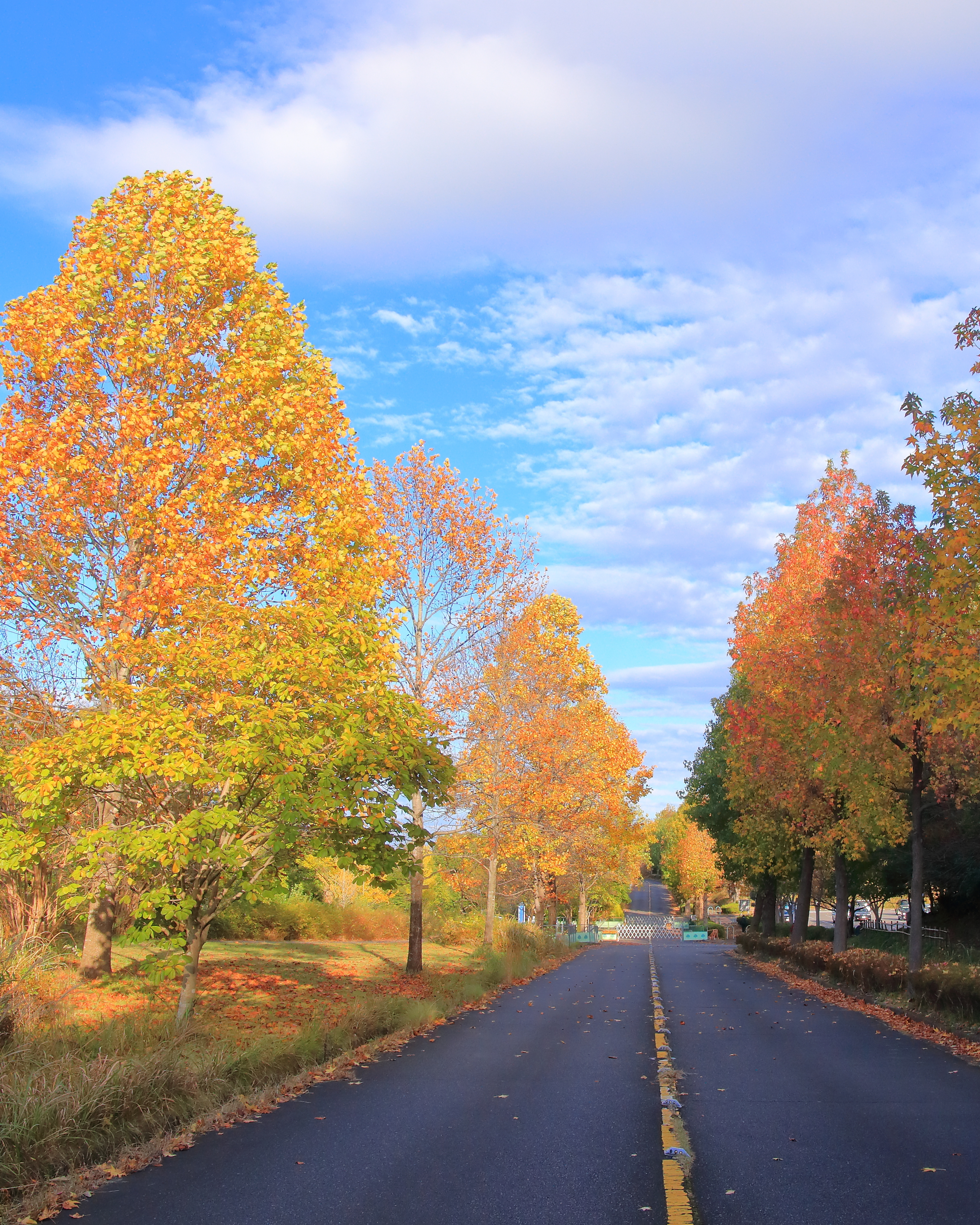 大高緑地は緑区にある都市公園で、約106haの広大な敷地にスポーツ施設、恐竜広場など子どもが遊べる施設が充実している。アクティビティだけではなく、竹林散策路や花木園、梅林などがあり、豊かな自然を肌で感じられることも大高緑地の楽しみのひとつになっている。園路を散歩する市民も多く、秋にはユリノキのほか、モミジやイチョウなど園内各所で紅葉を楽しむことができる。
