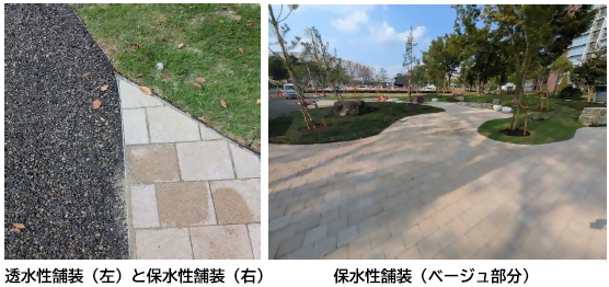 通常、舗装面は日射により温度が上昇しやすくなりますが、舗装内に蓄えられた水分が蒸発する際に周囲の熱を吸収することで、表面温度の上昇を抑える効果が期待できます。