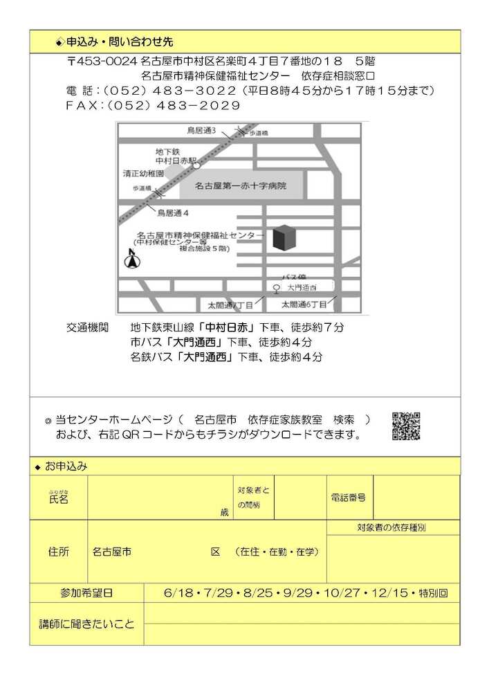 下記ちらしファイルについてはテキスト情報のない画像データになります。内容を確認したい場合は、名古屋市精神保健福祉センター(電話番号 052-483-3022)までお問合せください。