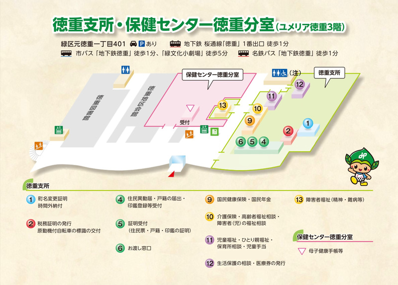 徳重支所では、緑区役所業務のうち一部取り扱いのない業務がありますのでご確認のうえ、ご来庁ください。