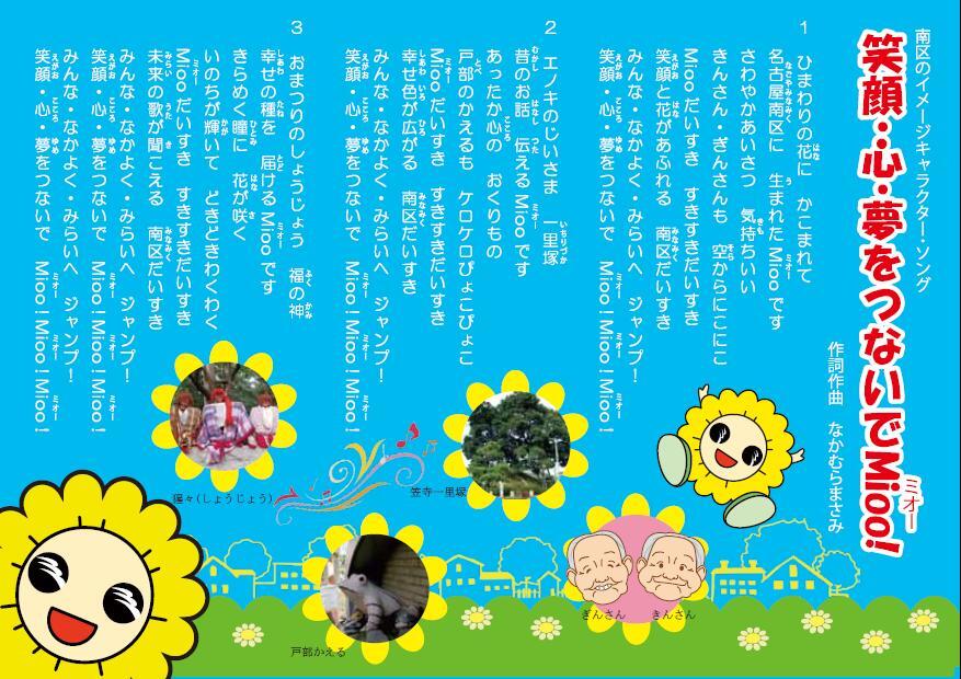 こうした声を受けて、南区にゆかりのある方々のあたたかい思いがつながって、ミオーのうた「笑顔・心・夢をつないでMioo!」が完成しました。