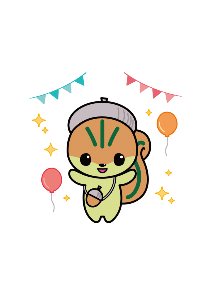 41 モリスちゃん(カラー):お祝いをする(風船・旗) (Png 157.8 KB)