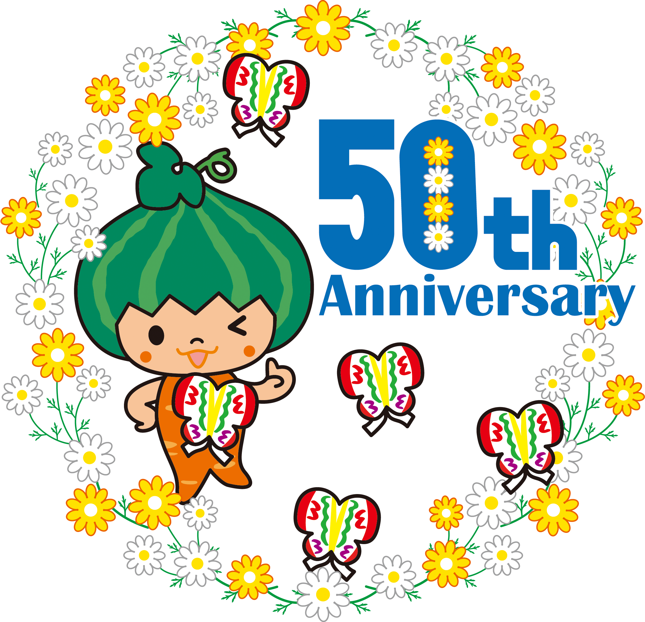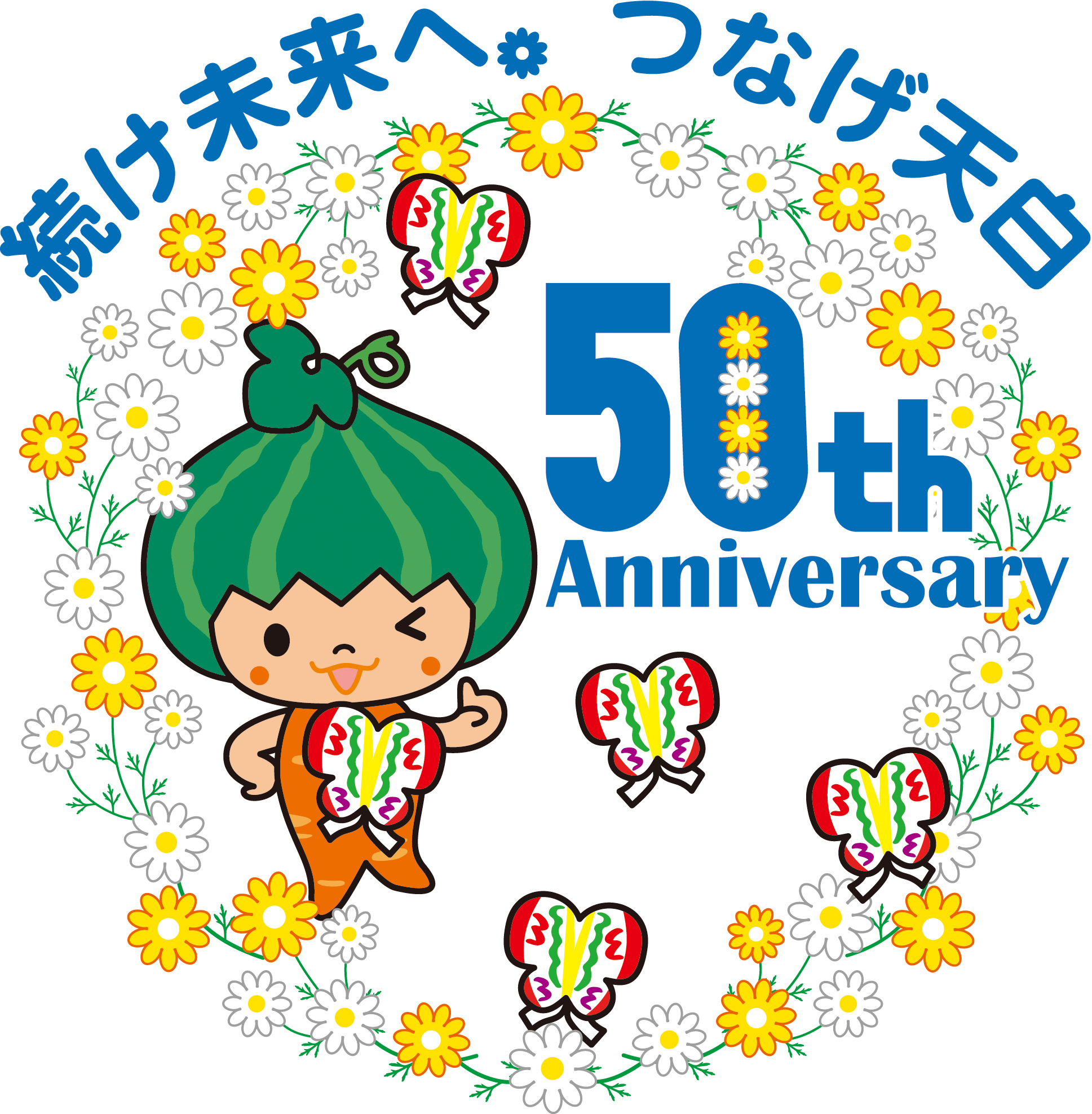 天白区役所職員が作成した5つの候補から、区民の皆さんなどの投票によって決定しました。投票いただいた皆さん、ありがとうございました。この記念ロゴマークとキャッチフレーズを活用して、各種50周年記念事業を行い、区民の皆さんとともに「かぼっちと一緒に笑顔あふれるまちづくり」に取り組んでまいります。
